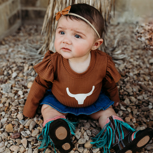 Literally Just A Cowgirl LS Fringe Onesie (0-18M)