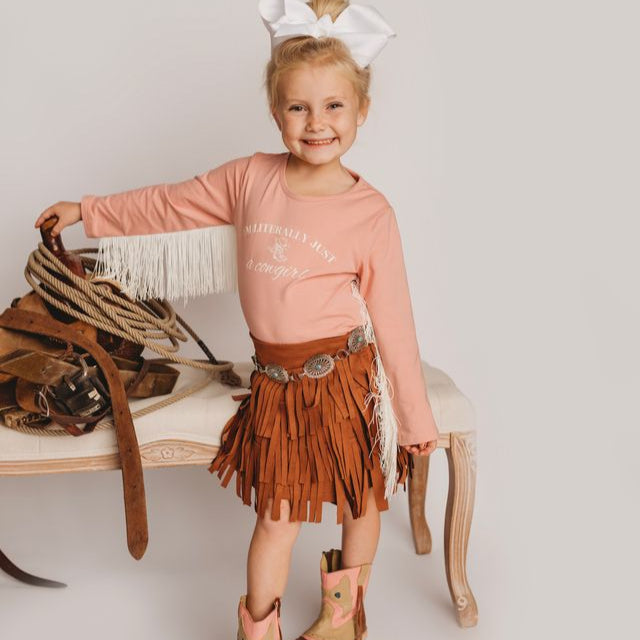 Literally Just A Cowgirl LS Fringe Shirt (2T-5T)