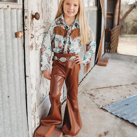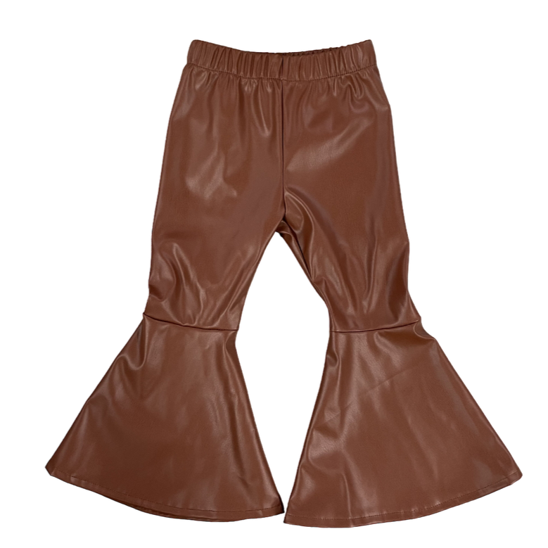 A must for this year’s Fall and Winter wardrobe, these Faux Brown Leather Bells are not only comfortable but extremely stylish! Perfect for any day wear or turning heads at the rodeo, these Faux Leather Pants will make a statement!