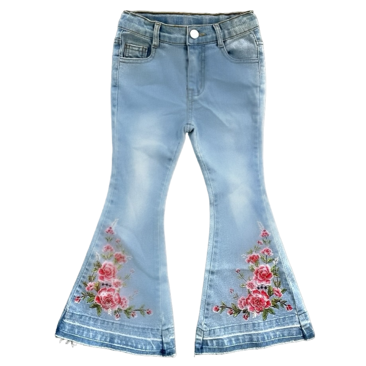 Give your little cowgirl the perfect blend of style & durability with our Floral Boot Flare Denim Jeans! These jeans showcase a charming floral print for a fun and fashionable western touch! Made from high quality denim, they are built to handle any adventure!