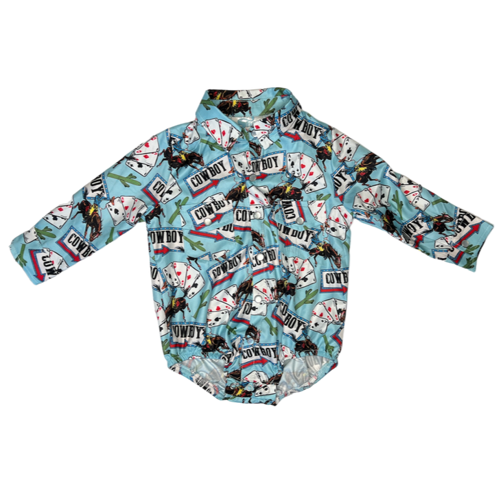 Vegas Cowboy LS Pearl Snap Onesie, (0-18M)
