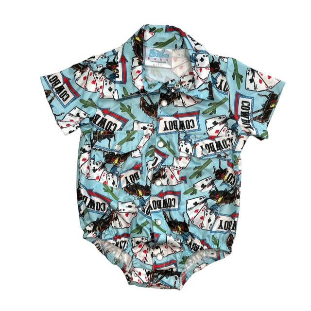 Vegas Cowboy SS Pearl Snap Onesie, (0-18M)