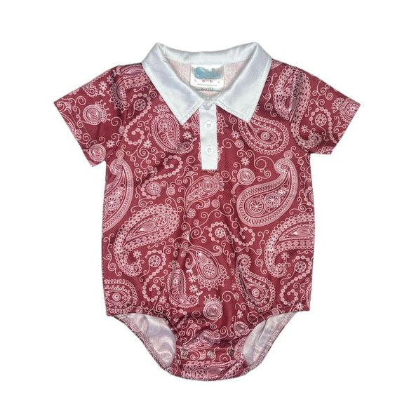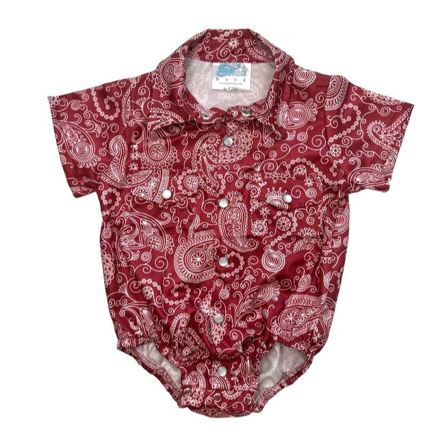 Maroon Paisley SS Pearl Snap Onesie, (0-18M)