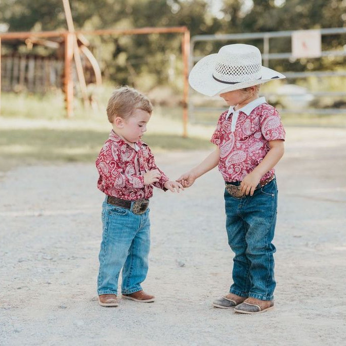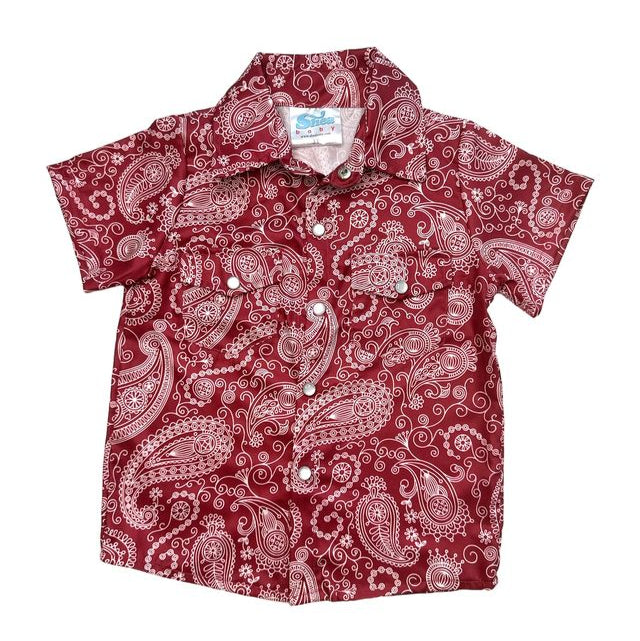 Maroon Paisley SS Pearl Snap Shirt, (2T-5T)