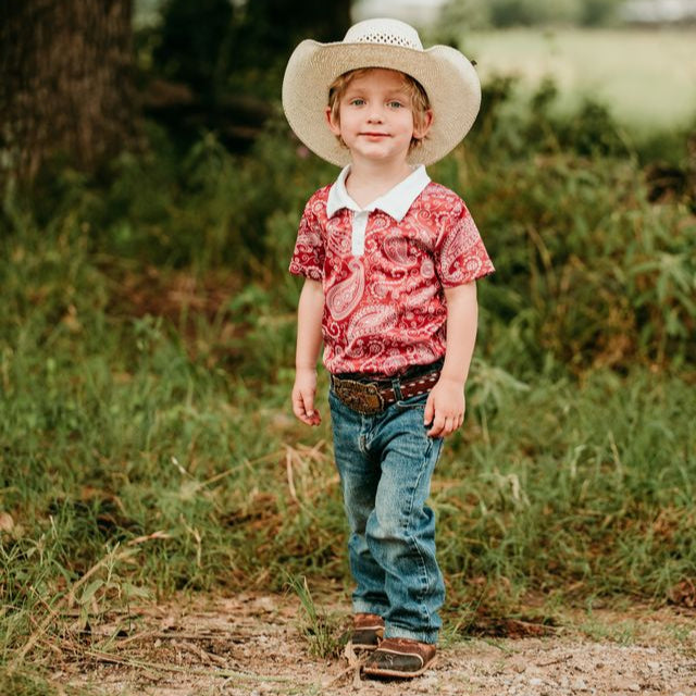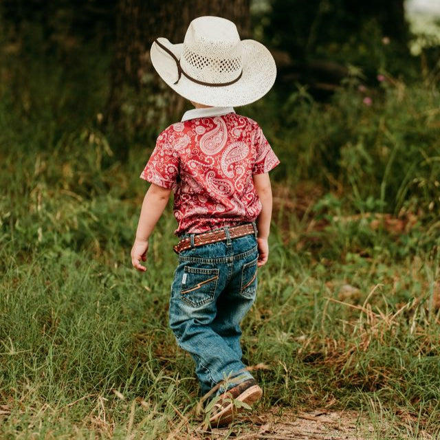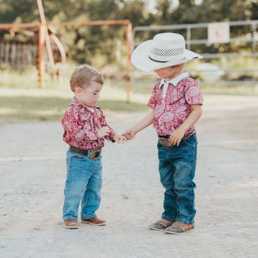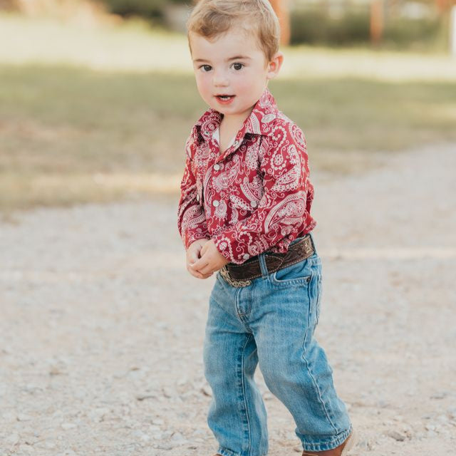 Maroon Paisley LS Pearl Snap Shirt, (2T-5T)