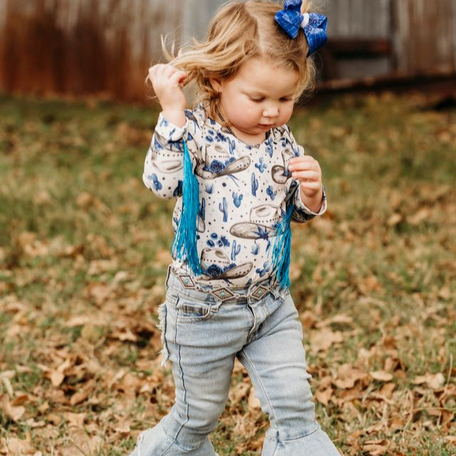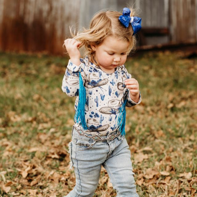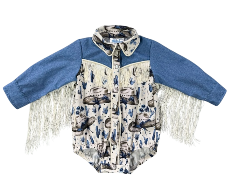 Rancher Cowgirl LS Fringe Onesie (0-18M)