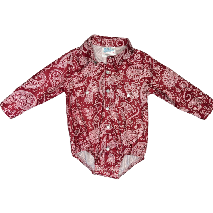 Maroon Paisley LS Pearl Snap Onesie, (0-18M)