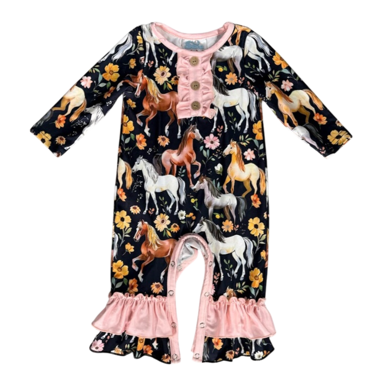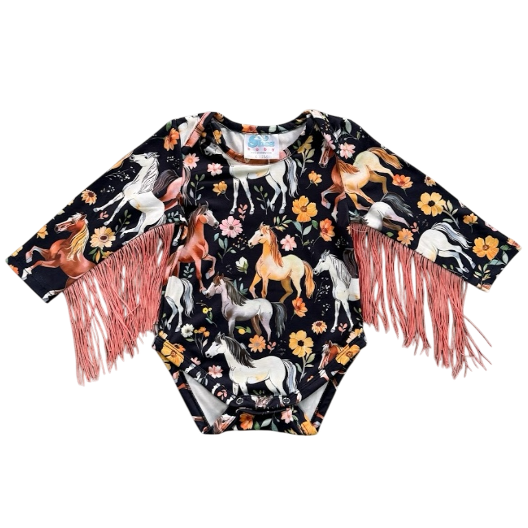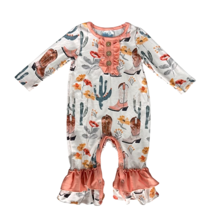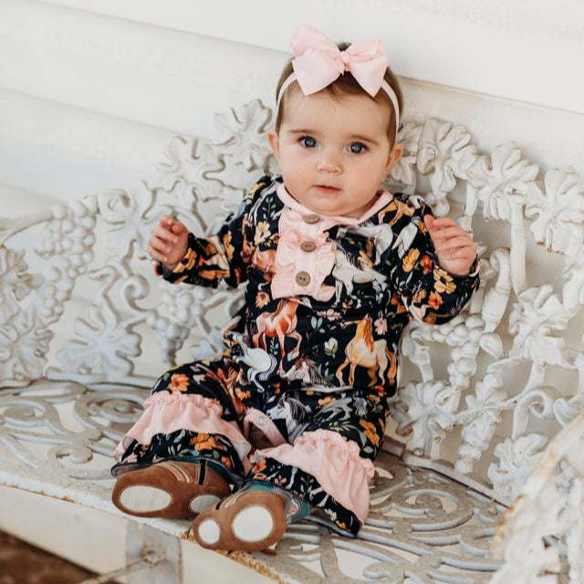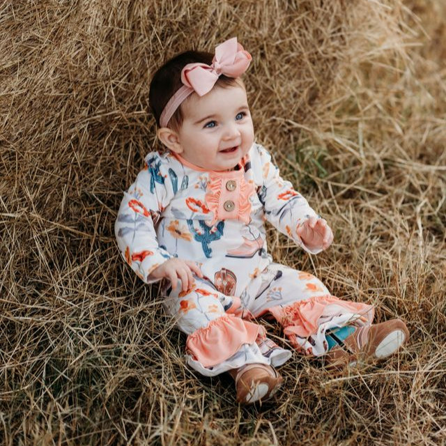 Retro Cowboy Blue LS Pearl Snap Onesie (0-18M)