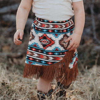 This Aztec Skirt is complimented by any of our Shea Baby Boots and Tops.