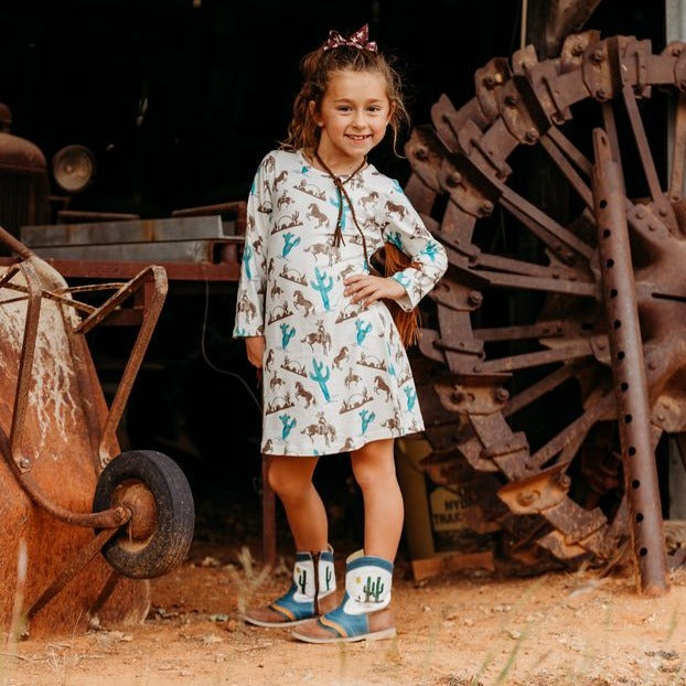 Gettin' Western Long Sleeve Fringe Dress Kids (6T-7T)