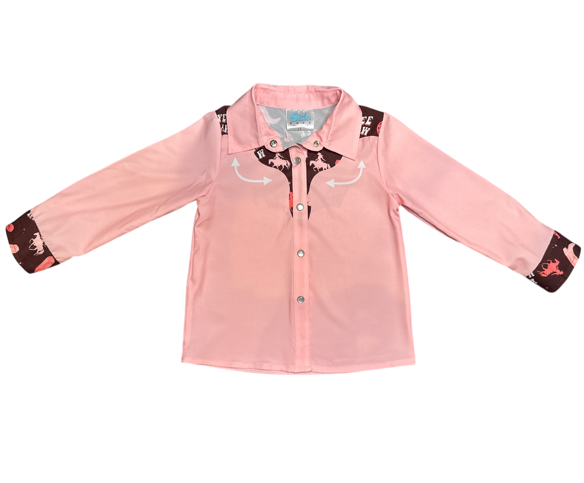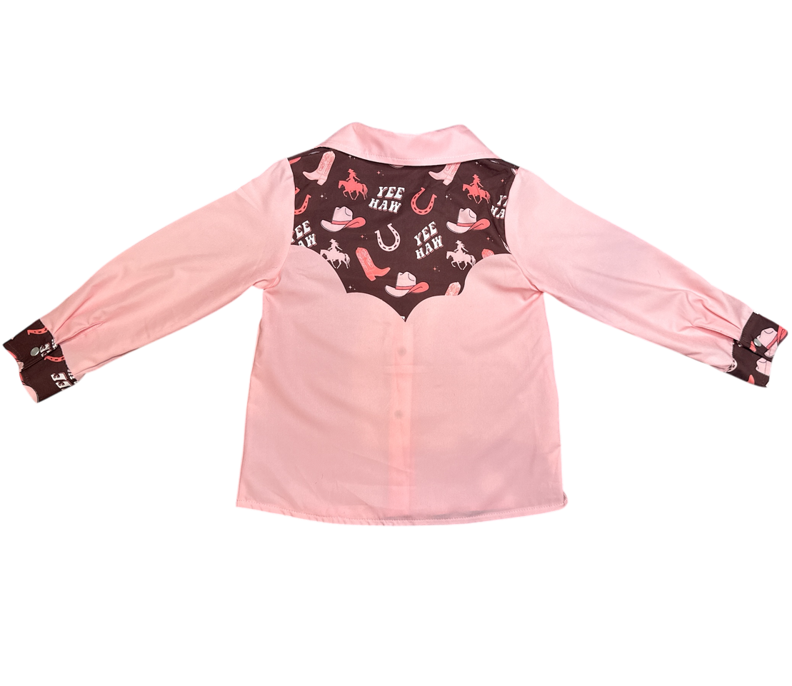 Yeehaw Cowgirl Pearl Snap Long Sleeve Shirt, (6-7)
