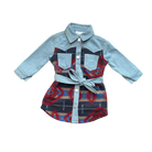 Our Aztec Denim Dress is the perfect blend of western charm & winter style. Crafted from high quality material this dress keeps your little cowgirl cozy in style! This is a must have this season!
