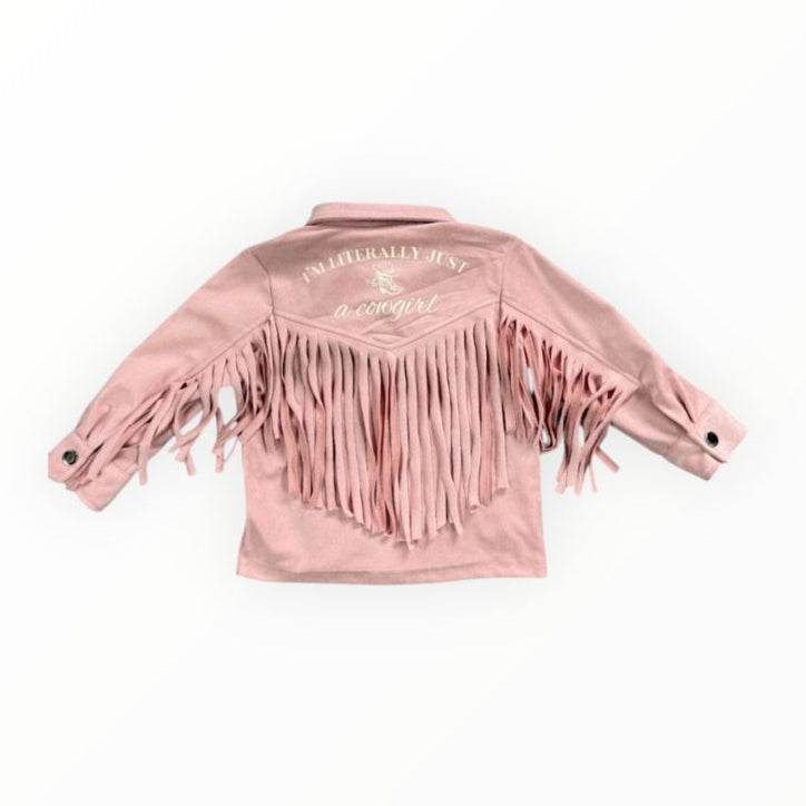 This Literally Just A Cowgirl Pink Jacket goes with our jeans, skirts and shorts!