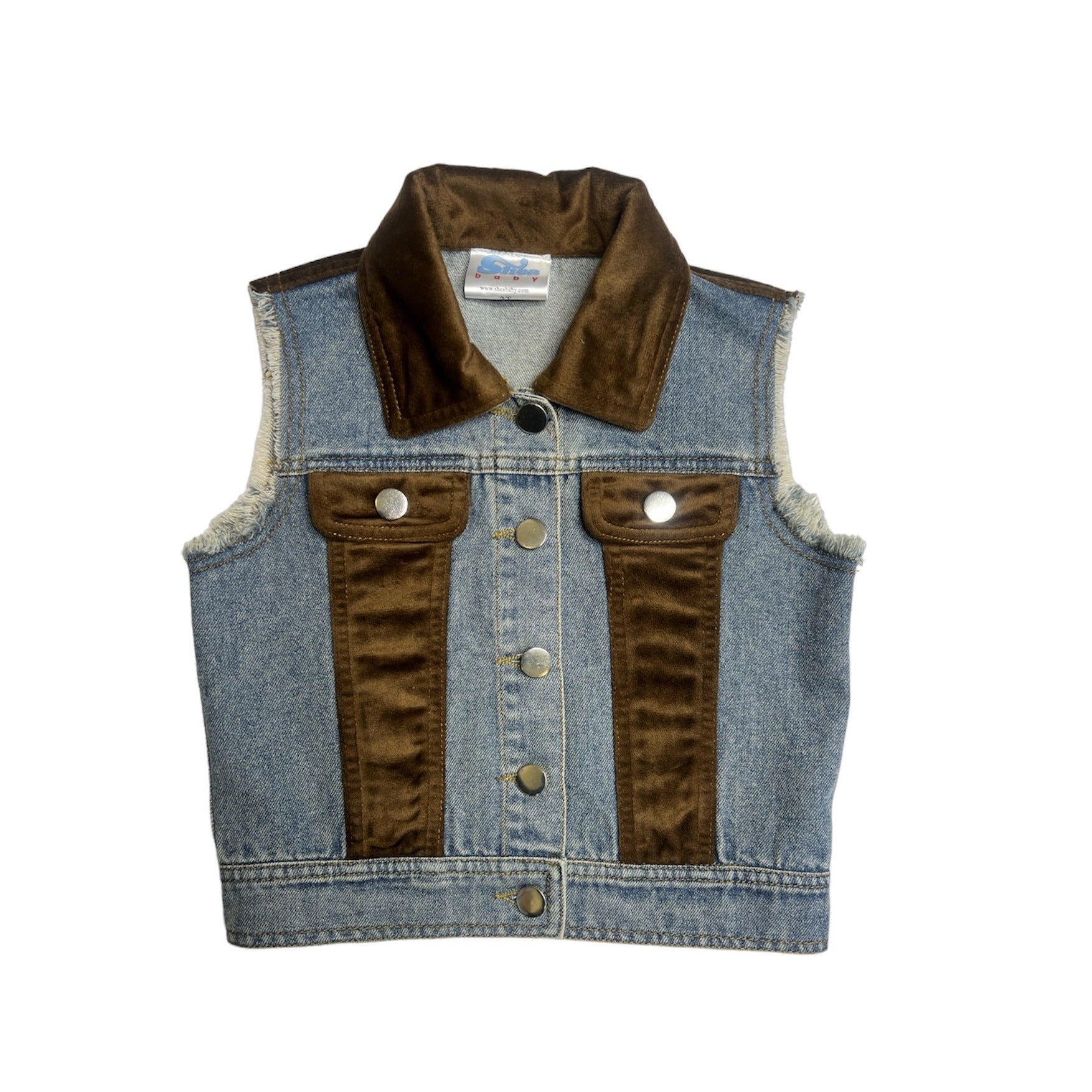 Who doesn't LOVE Denim and Suede? This Denim Suede Vest will have your little looking stylish this Fall/ Winter! Pair with the matching Denim Suede Skirt and a Shea Baby long sleeve top for the perfect outfit!