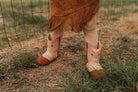 Our bestselling "Addi" boots are designed with light pink and brown leather that make this boot a perfect for match almost any outfit! The added fringe gives "Addi" the perfect amount of uniqueness every little cowgirl wants!  Made from real leather these cowgirl boots are made to last!