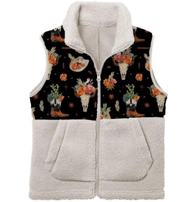 Black Floral Skull Fleece Vest (6-7T)
