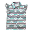 Our Teal Aztec SS Pearl Snap Shirt is the perfect blend of comfort, style and durability!! This shirt is perfect for family parties or days on the ranch. This is a must have in your little girls Summer wardrobe!