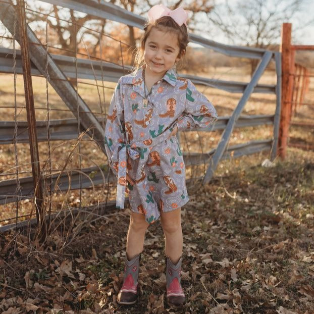 Boot & Cactus Button Up Long Sleeve Dress Kid (6T-7T)