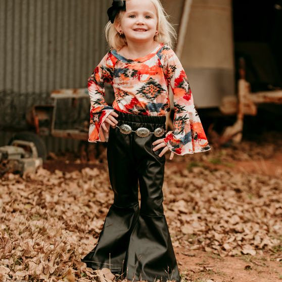 Black Leather Bells Toddler (6-7)