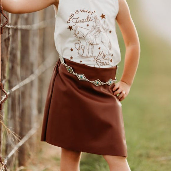 Brown Leather Skort, (6-7)