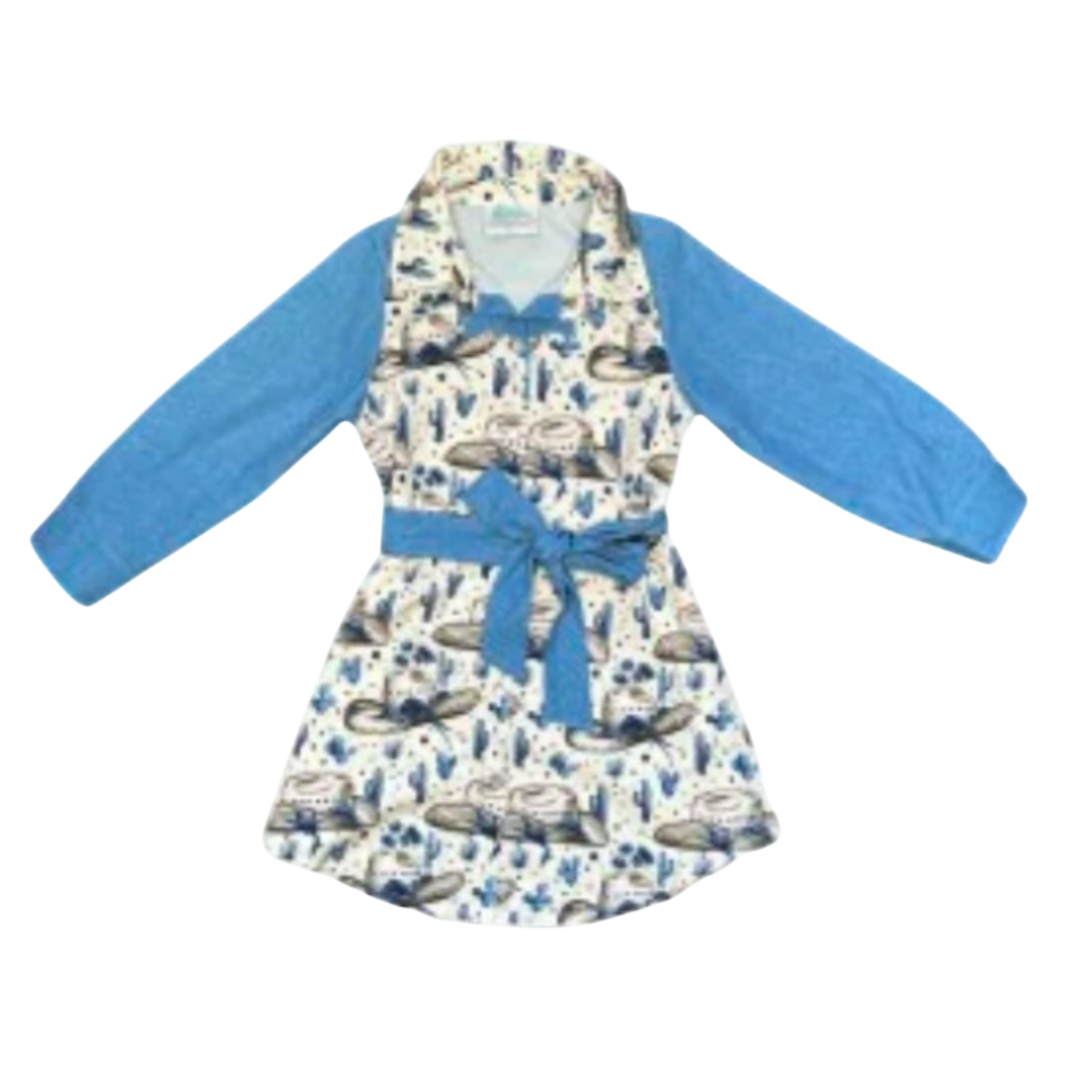 Blue Vintage Cowgirl LS Pearl Snap Dress (6-7)