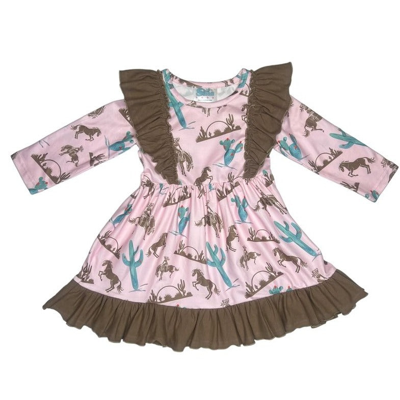 Gettin' Western Ruffle Long Sleeve Dress Kid (6T-7T)