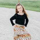 This adorable shirt is the perfect addition to any fall and winter collection! Soft, comfortable and stylish! This will pair perfectly with our Printed Shorts or Skirts.