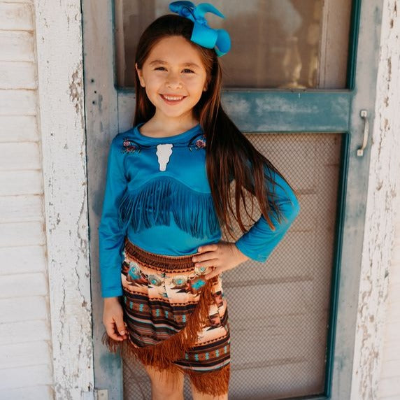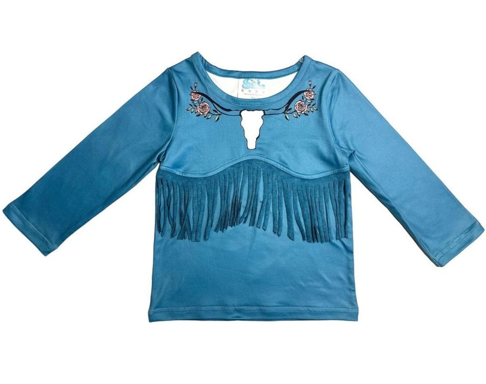 Blue Steer Head Fringe Shirt Kids (6-7T)