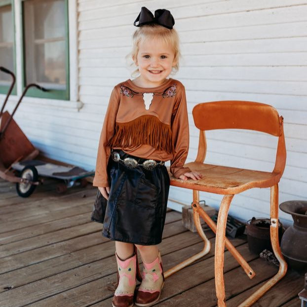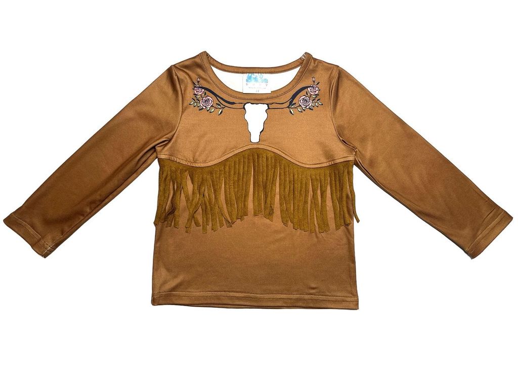 Tan Steer Head Fringe Shirt Kids (6-7T)