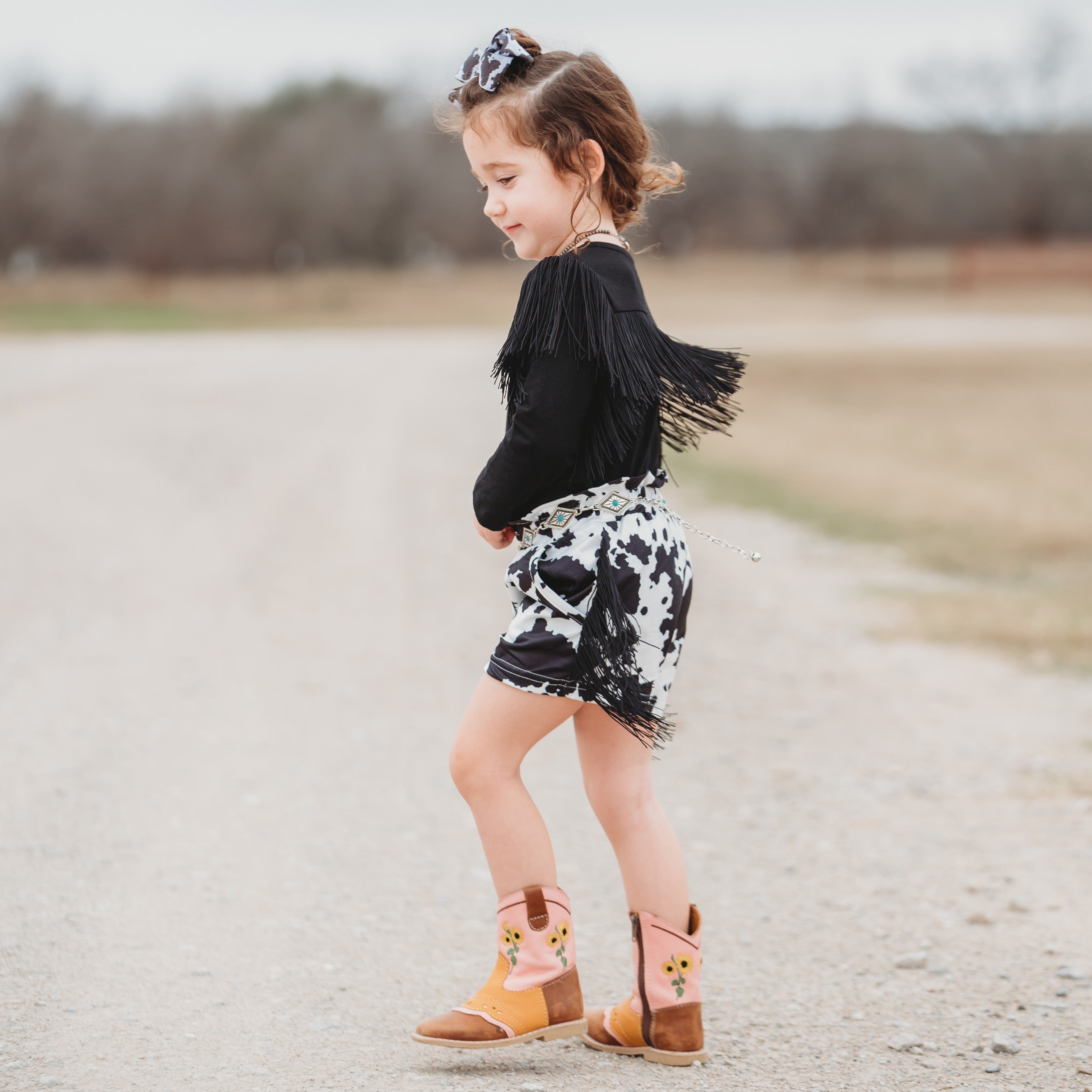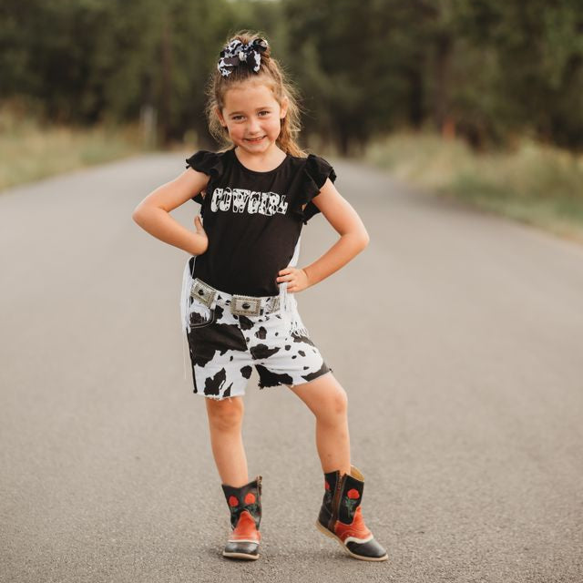 Black Cowprint Fringe Shirt, (6-7)