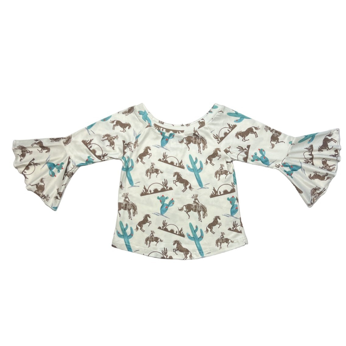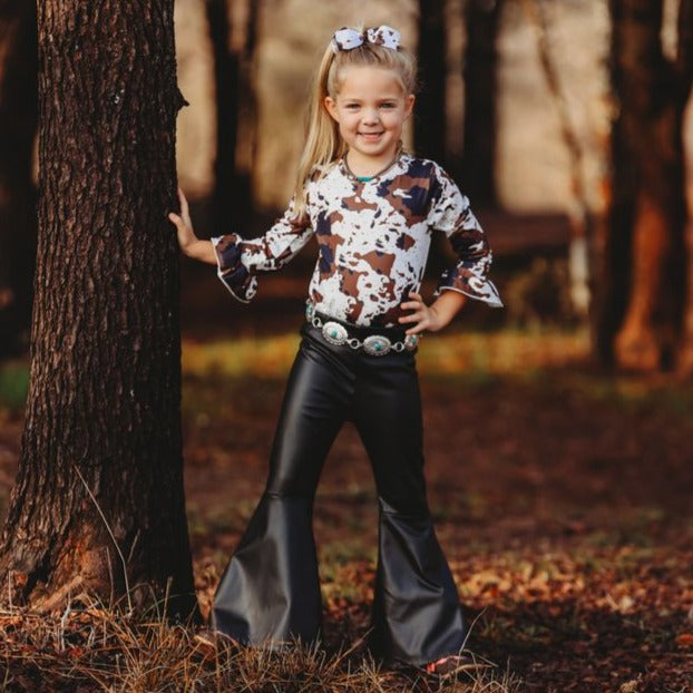 Brown Cowprint Bell Sleeve Shirt Kid (6-7T)