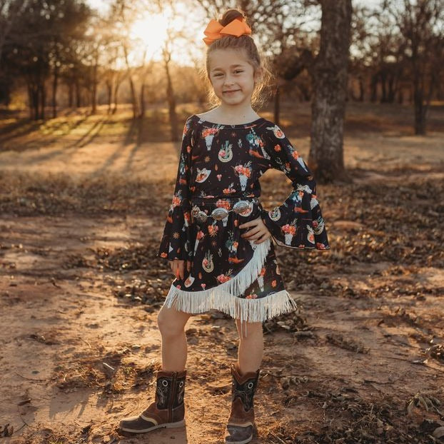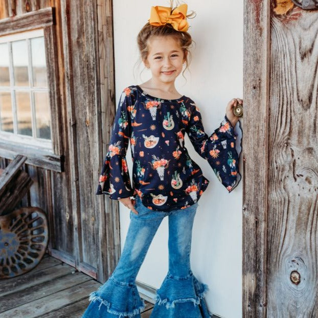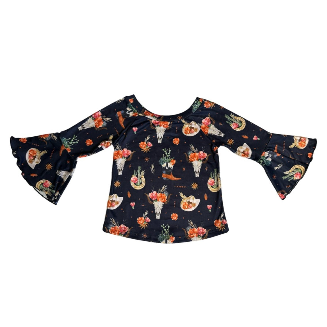 Black Floral Skull Bell Long Sleeve Shirt Kid (6-7T)