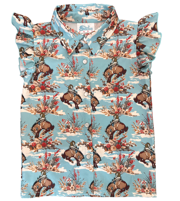 A Classic western staple for your little one! Bucking Bloom SS Pearl Snap Shirt features pearl snaps, durable fabric and a light weight fabric perfect for this Spring/ Summer!