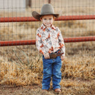 Crafted with stylish pearl snap buttons, this Long Sleeve Brand Print Pearl Snap Shirt will look handsome on your little one! Made from light weight material, this top is perfect for keeping little cowboys cool and protected in the summer months!