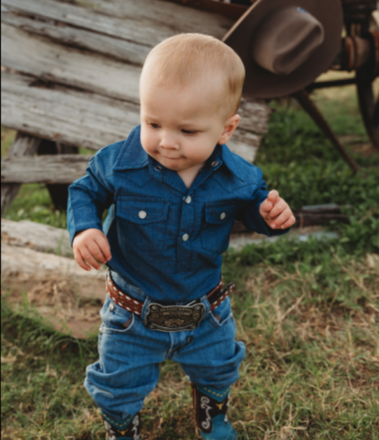 Dark Denim LS Pearl Snap Onesie Baby (0-18M)