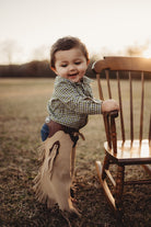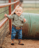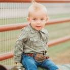 Crafted with stylish pearl snap buttons, this Plaid Long Sleeve Pearl Snap onesie will look handsome on your little one! The fun colors and durable material make this shirt perfect for family parties and days on the ranch. Shea Baby Long Sleeve Snap onesie are a must for every cowboy!