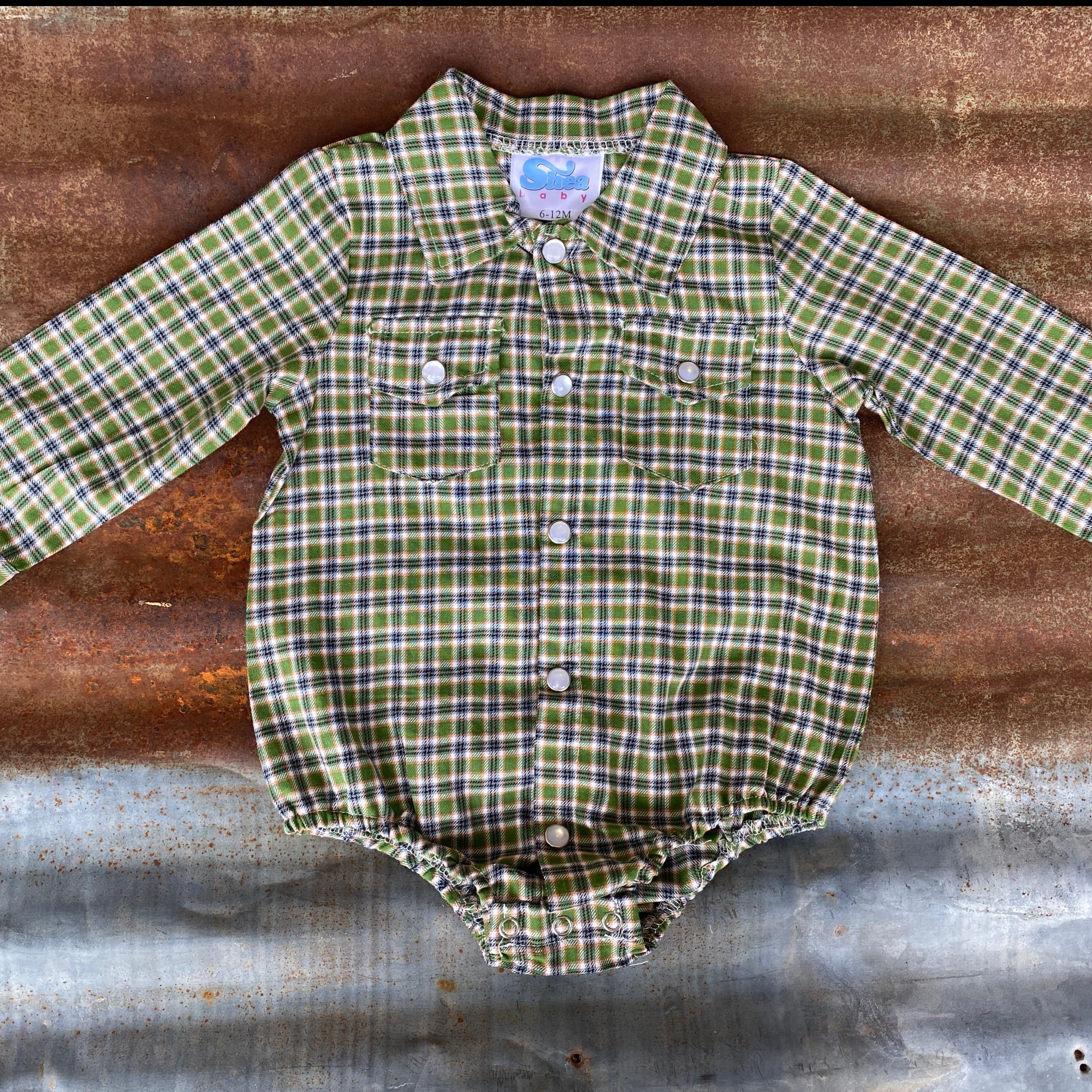 Green Plaid LS Pearl Snap Onesie Baby (0-18M)