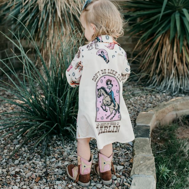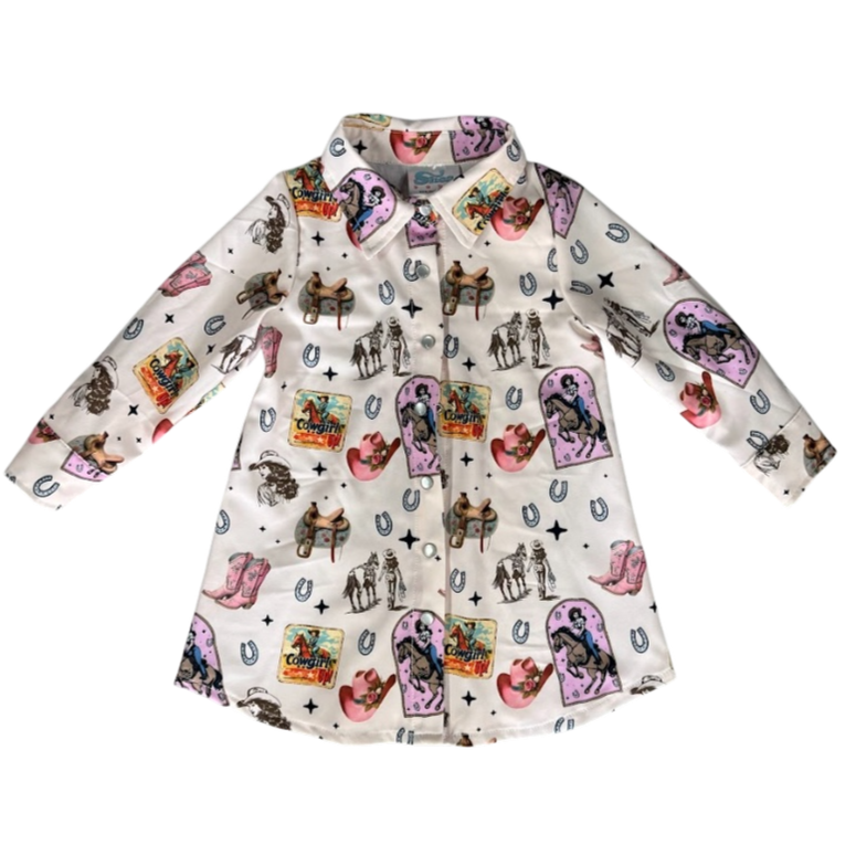 Pink Vintage Cowgirl LS Pearl Snap Dress (0-18M)