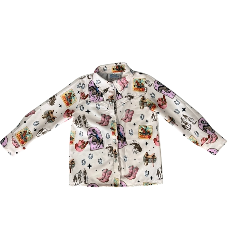 Pink Vintage Cowgirl LS Pearl Snap Shirt (2T-5T)