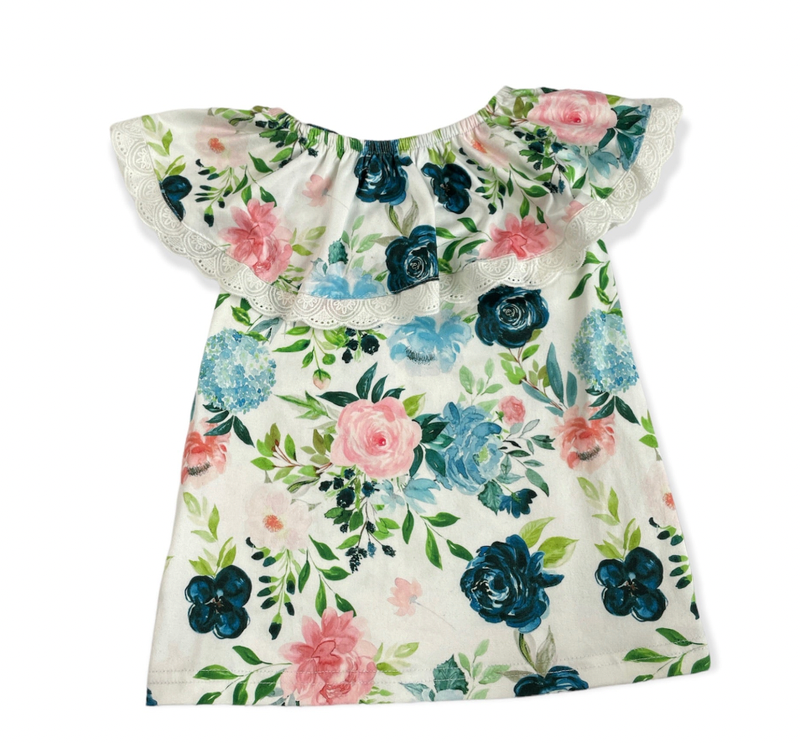 Floral Off Shoulder Lace Neck Shirt, (2T-5T)