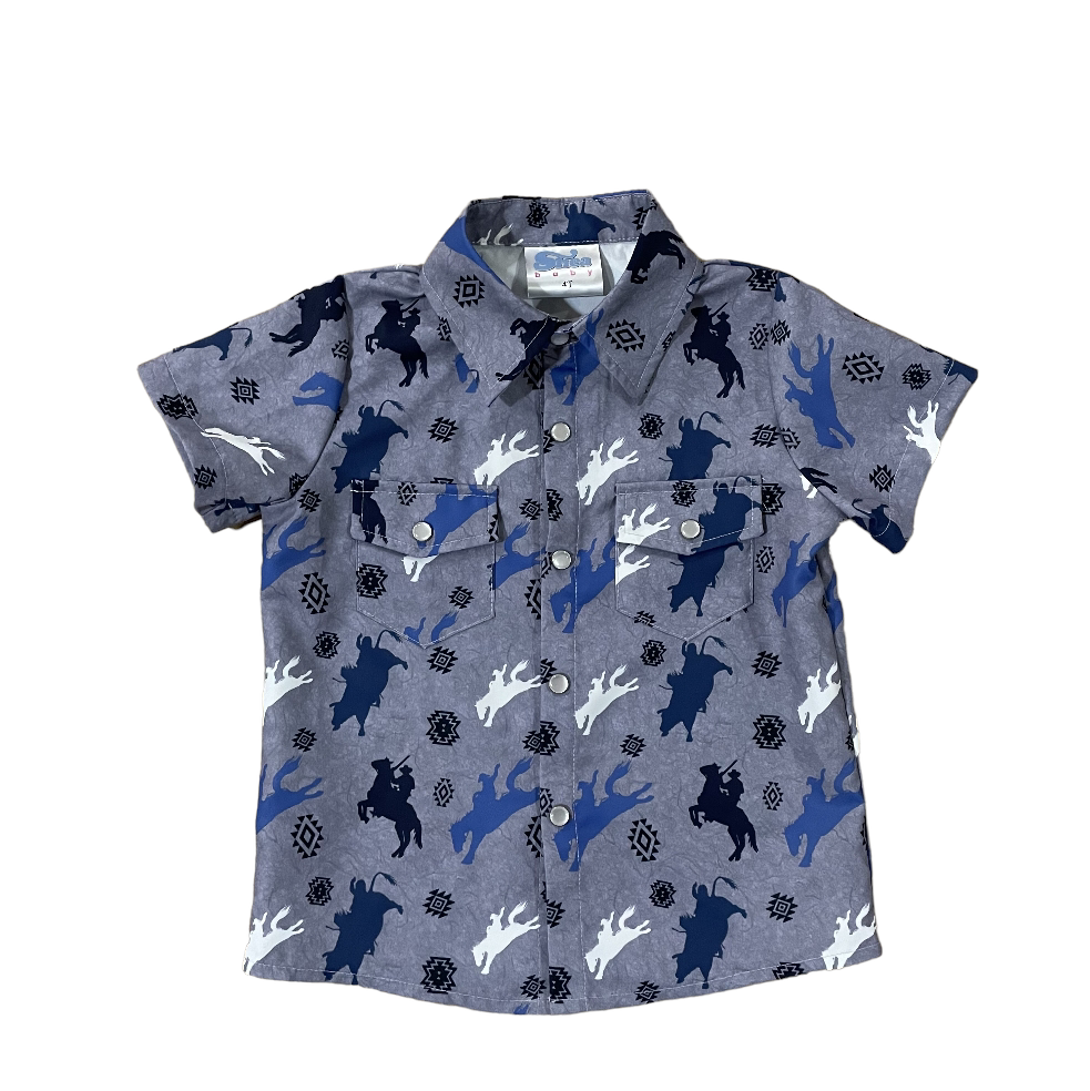Crafted with stylish pearl snap buttons, this Short Sleeve Pearl Snap shirt will look handsome on your little one! The durable material makes this shirt perfect for family parties and days on the ranch. Shea Baby Short Sleeve Snap shirts are a must for every cowboy!