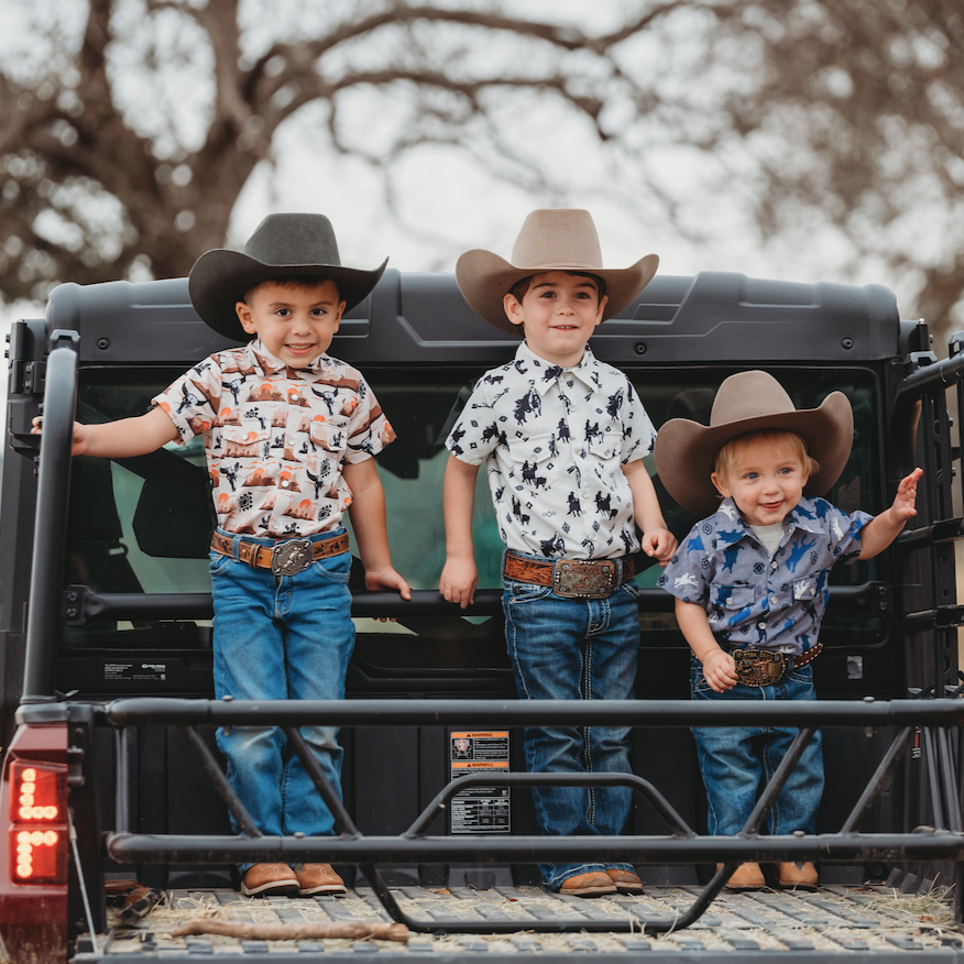 Crafted with stylish pearl snap buttons, this Short Sleeve Pearl Snap shirt will look handsome on your little one! The durable material makes this shirt perfect for family parties and days on the ranch. Shea Baby Short Sleeve Snap shirts are a must for every cowboy!