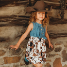 Check out this stylish Denim and Cowprint dress! Made from 100% cotton, this comfortable dress is perfect for any occasion.
