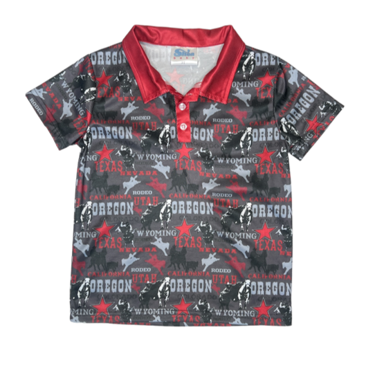 Rodeo Road Black Polo Shirt - a classic look for you boy! This Polo is made from soft, breathable and durable fabric making it the perfect shirt from longs days on the ranch to family outings. Whether paired with or Shea Baby Jeans or Shorts, its a must have in every boys wardrobe!