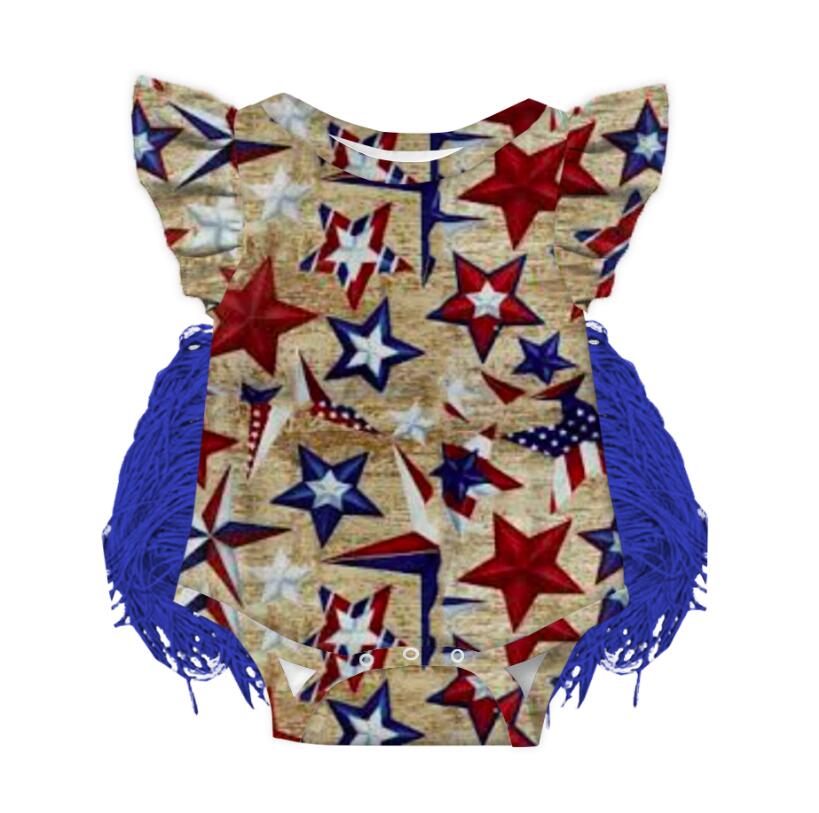 Summer or Winter our Patriotic Short Sleeve Onesies are a must for every little one’s closet. Our fun designs with 5 inch fringe will sure make every little one smile and feel special. Made from durable material, these shirts are made to last.