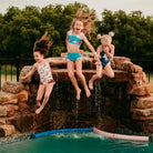 Let your cowgirl make a splash in our Free Spirit Girls Swimsuit! This two piece swimsuit is perfect for summer adventures in the pool, beach or rodeo water parks! Designed for comfort and durability, this is the perfect swimsuit for your little horse lover!