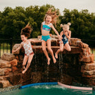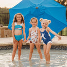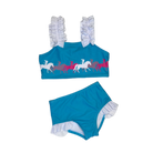 Let your cowgirl make a splash in our Free Spirit Girls Swimsuit! This two piece swimsuit is perfect for summer adventures in the pool, beach or rodeo water parks! Designed for comfort and durability, this is the perfect swimsuit for your little horse lover!