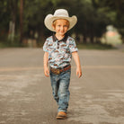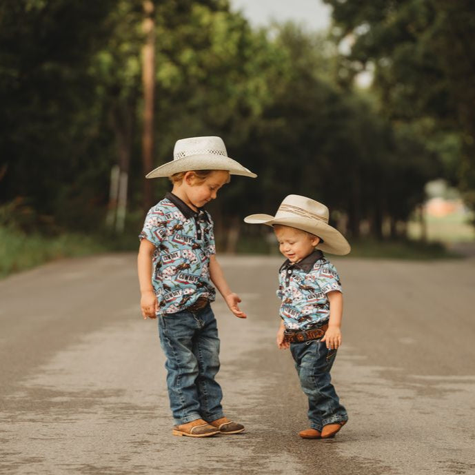 Vegas Cowboy Polo Shirt - a classic look for you boy! This Polo is made from soft, breathable and durable fabric making it the perfect shirt from longs days on the ranch to family outings. Whether paired with or Shea Baby Jeans or Shorts, its a must have in every boys wardrobe!