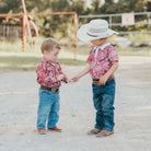 Crafted with stylish pearl snap buttons, this Long Sleeve Pearl Snap shirt will look handsome on your little one! The durable material makes this shirt perfect for family parties and days on the ranch. Shea Baby Short Sleeve Snap shirts are a must for every cowboy!