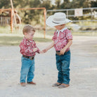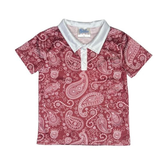 Maroon Paisley SS Polo - a classic look for you boy! This Polo is made from soft, breathable and durable fabric making it the perfect shirt from longs days on the ranch to family outings. Whether paired with or Shea Baby Jeans or Shorts, its a must have in every boys wardrobe!